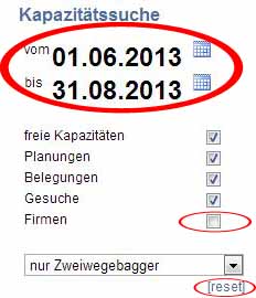 Die Landkarte kann über das Kalendarium "Kapazitätssuche" beliebig terminlich gezoomt werden (Terminzoom).