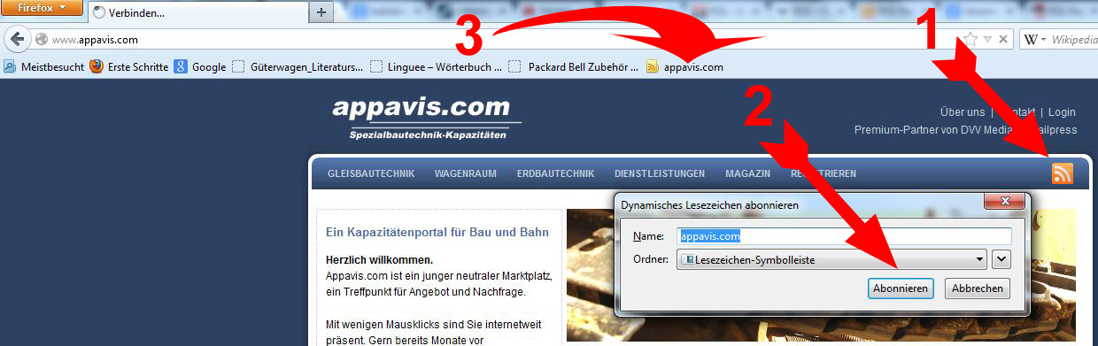 Nachfolgend wird beispielgebend das Einrichten des RSS-Feeds bei Mozilla Firefox und Internet Explorer in illustrierten Schritten erläutert.