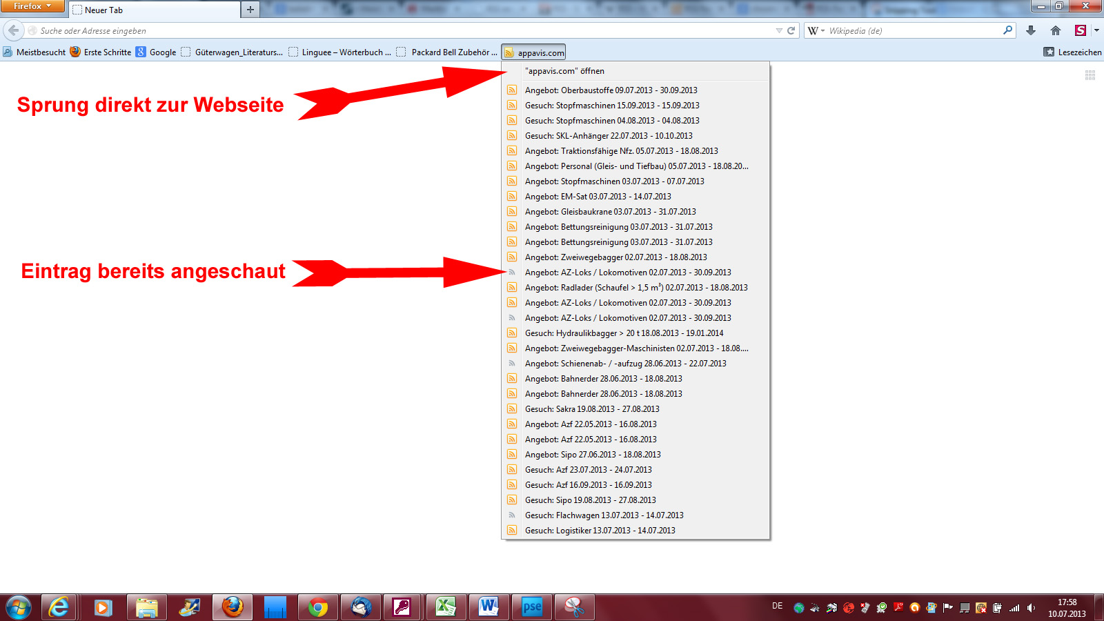 Firefox kennzeichnet für Sie bereits von Ihnen angeschaute Einträge.
