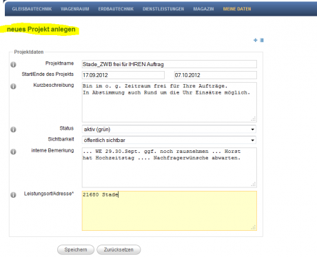 die Schritte zum Anlegen eines Projektes sind prinzipiell gleich und ähneln darüber hinaus der Ihnen aus Gesuchen bekannten Vorgehensweise.