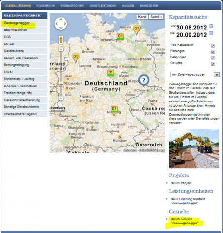 In unserem Beispiel ist dies GLEISBAUTECHNIK, Kategorie Zweiwegebagger.