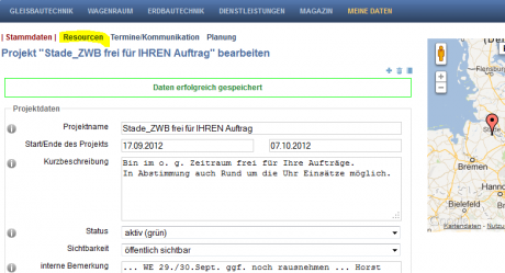 Über das Untermenü Resourcen wird nun Ihrem Projekt die Leistungseinheit zugeordnet.