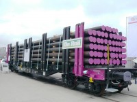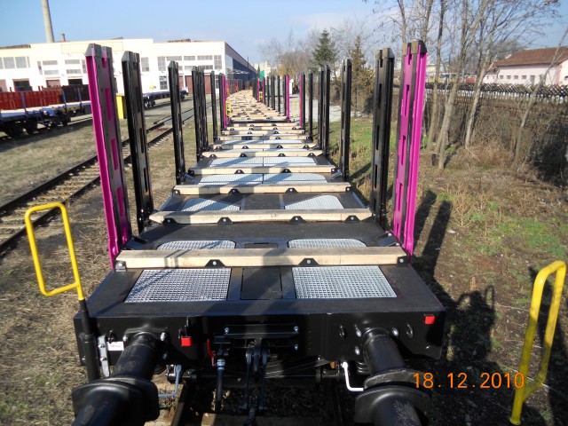Fußboden Gitterroste (begehbar), Hartholz-Ladeschwellen, Spanneinrichtung für Gurte, Rungen mit auswechselbaren Kunststoffschienen an den Berührungsflächen zum Ladegut. Der Wagen eignet sich zum Transport von Rohren, Profil-und Flachstahlprodukten unter Beachtung der Einzellasten und des Lastgrenzrasters.